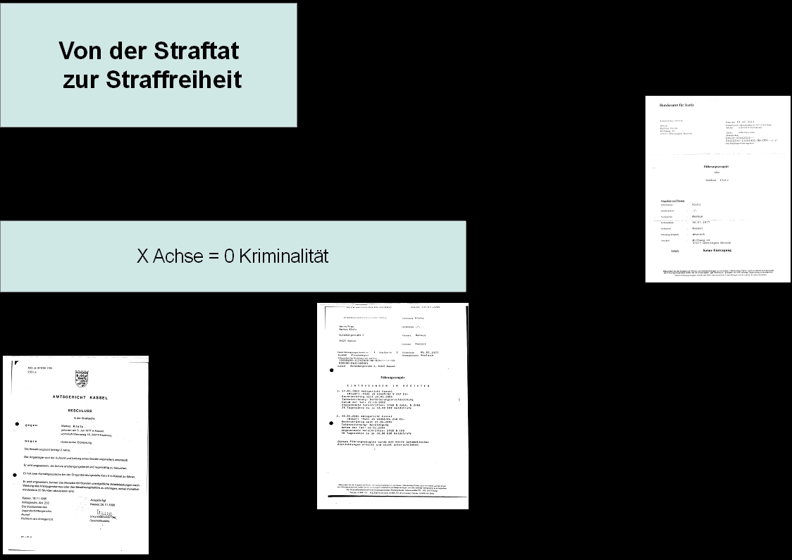 Die Skizze die ich unten aufgeführt habe, zeigt eindeutig, den Verlauf aus der Kriminalität heraus, dies geht am besten mit den Verlaufsdaten aus den Akten und der Bearbeitung dieser Daten.
